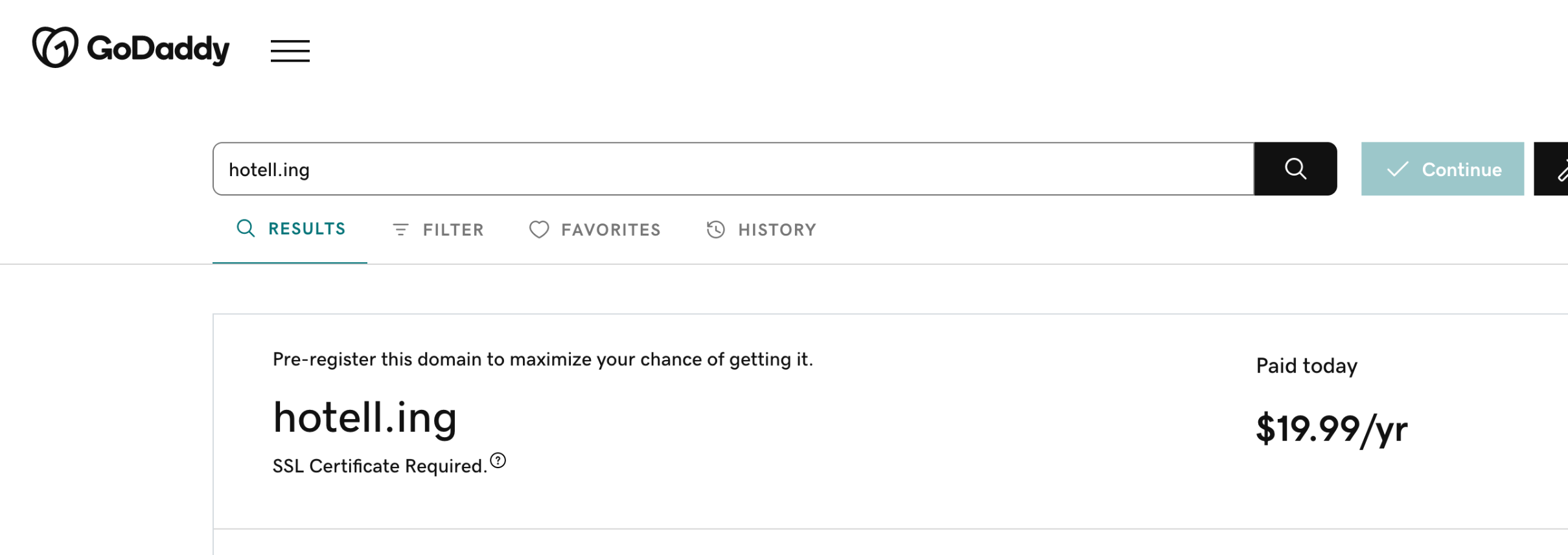 Your registration fee for this domain is $19.99. After the initial registration, this domain will renew at $19.99/yr.